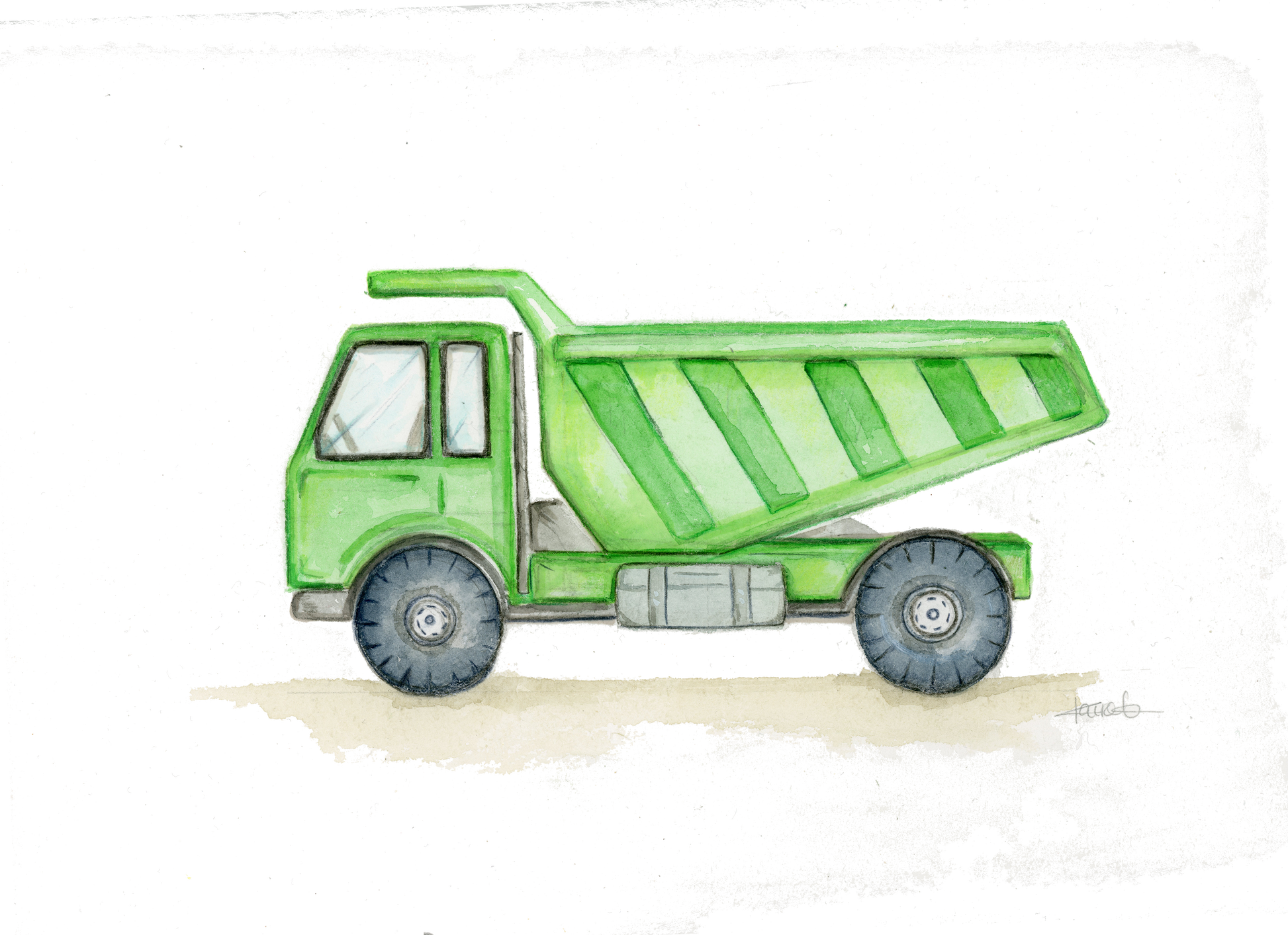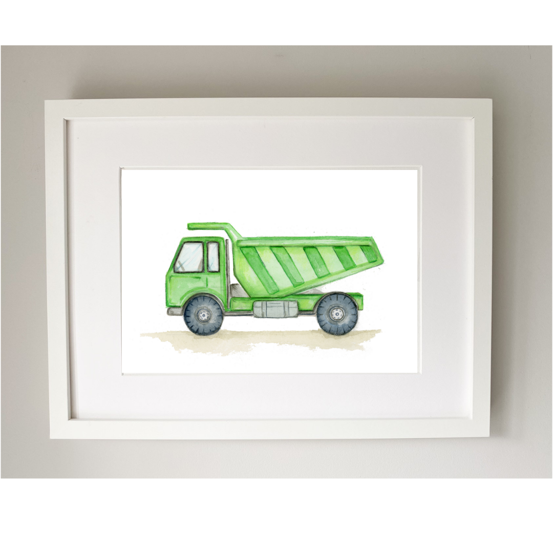 Nursery Print Green Dump Truck